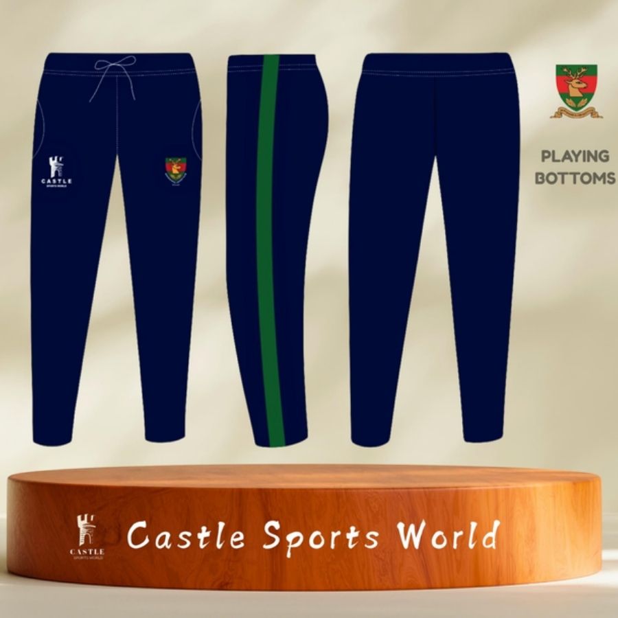 Signature Club Aesthetics: Presented in a sleek, classic navy blue, these pants feature a striking green athletic stripe running down the side of the leg. They proudly display the full-color club crest on the left thigh and the crisp Castle Sports World logo on the right, perfectly matching your team top.